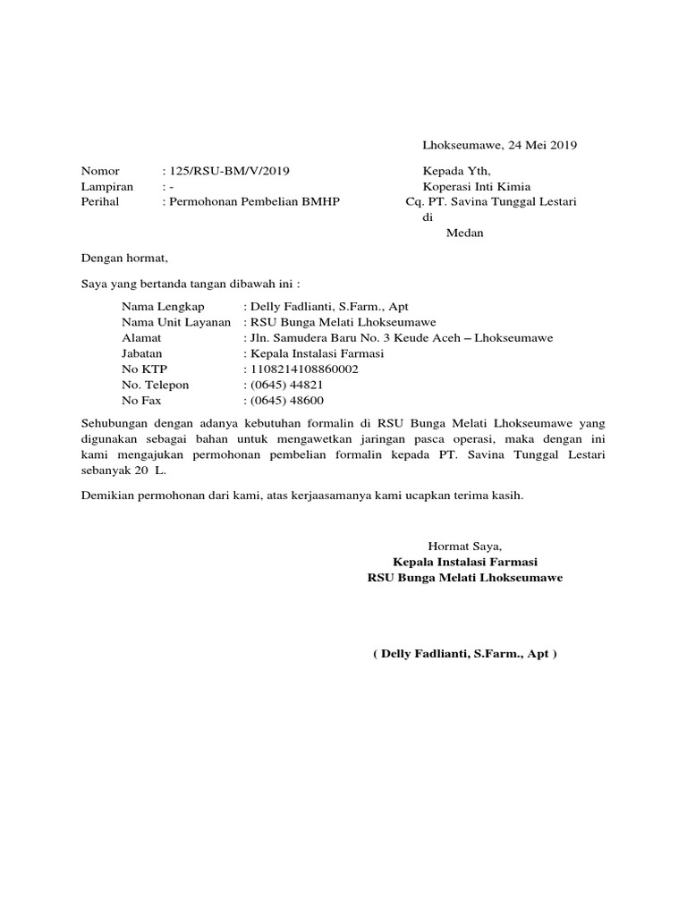 Sebagai bahan pertimbangan, saya juga akan melengkapi beberapa dokumen pendukung. Savesave surat ijin pembelian bahan lab for later. Suratresmi.id » surat permohonan » 15 contoh surat permohonan cuti paling lengkap. Untuk itu kami mohon anda dapat mengirimkan spesifikasi yang lebih rinci, daftar harga, cara pembelian berikut cara pembayarannya. Ma modern dalaailul khoirot alamat : Pasalnya untuk permohonan izin tidak hanya dilakukan secara lisan saja, tetapi juga secara tertulis. Demikian surat permohonan rekanan dari kami, atas kerjasamanya yang baik kami ucapkan terima kasih. Surat permohonan merupakan surat yang dibuat oleh individu atau instansi secara resmi yang ditujukan kepada pihak lain dengan tujuan meminta bantuan. 1.mengajukan permintaan penawaran harga untuk item prekursor yang ingin dipesan (disertai no. Setelah kita tahu mngenai beberapa hal terkait surat permohonan di atas. Surat permohonan adalah salah satu jenis surat yang sangat penting untuk diperhatikan sebab dalam pembuatannya haruslah memenuhi satu kaidah tertentu. Text of surat permohonan bahan penelitian. Etanol senyawa tersebut semata mata akan digunakan untuk :